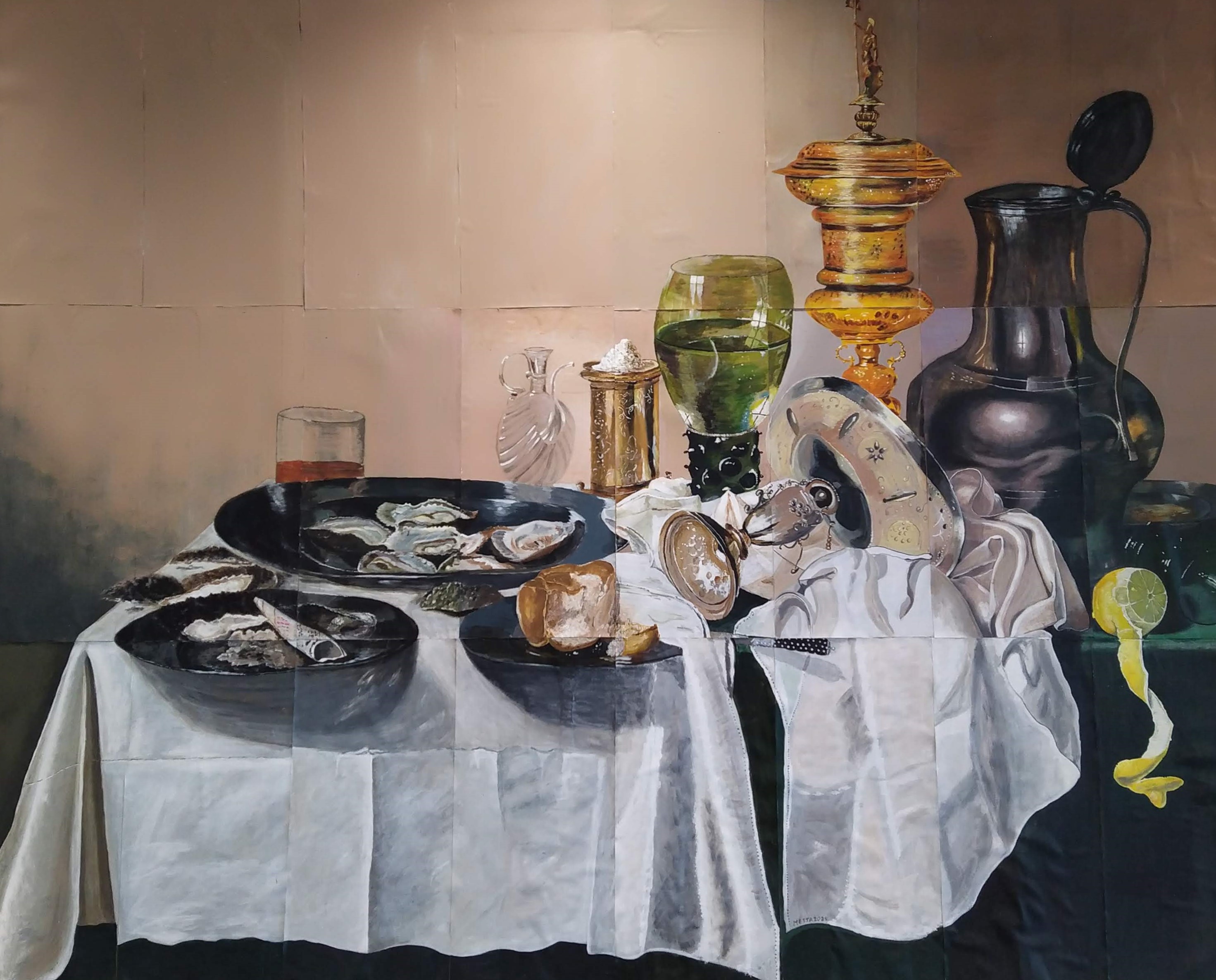 Het kunstwerk ontstond tijdens de lessen van Michiel. De groep werkte stap voor stap samen aan één groot geheel. Iedere cursist schilderde een eigen deel van het beeld, maar overleg en afstemming speelden een grote rol.